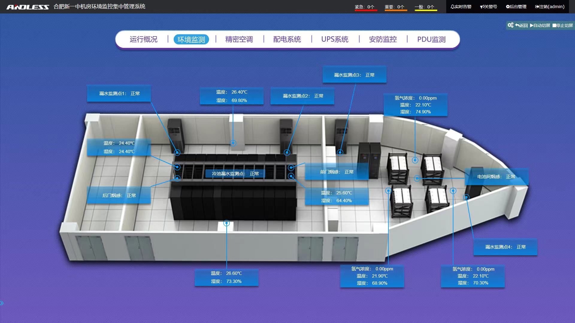 近期我司為合肥市第一中學中心機房配置了UPS電源電池、配電、制冷、機柜、封閉、動力環境監控系統,現已安裝調試完成。