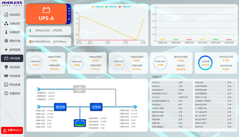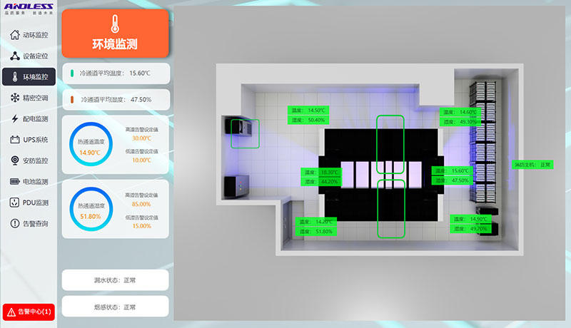 我廠為本項目提供了1套雙排微模塊冷通道,通道包含:1臺GLG/JM型精密配電柜、13臺GLP型服務器機柜、2臺GLKI026型列間空調,以及配套通道組件和配套動環監測系統。UPS不間斷電源系統包含:1臺GLS-60KVA、1臺GLA-40KVA型UPS主機、192節6-GFM-100型蓄電池、配套電池柜,以及1套GLK121型基站空調,所有設備現已供貨完成。