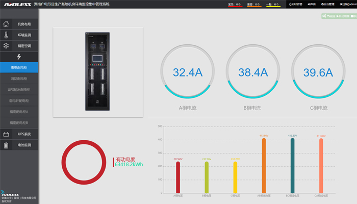 本次的本次動力環境監控系統主要是對機房內配電、UPS主機、電池、精密空調、環境等設備進行集中監控管理,該系統可廣泛應用于監控機房、通信機房、隧道風機房、變電站及配電室等場所。本動環系統軟件可實現中文圖形化人機界面的操作,界面更友好,功能強大,可實現對機房內設備的全參數、全方位的監控,大大提高了用戶的維護管理效率,降低了維護成本。