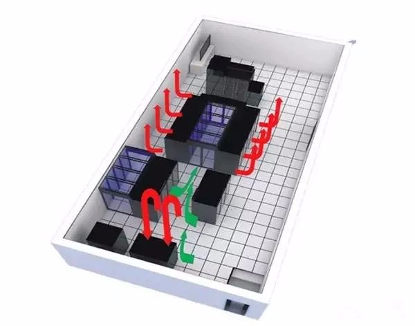 (1)機柜呈面對面排列,形成冷通道,出風口在機柜面部的地板上。