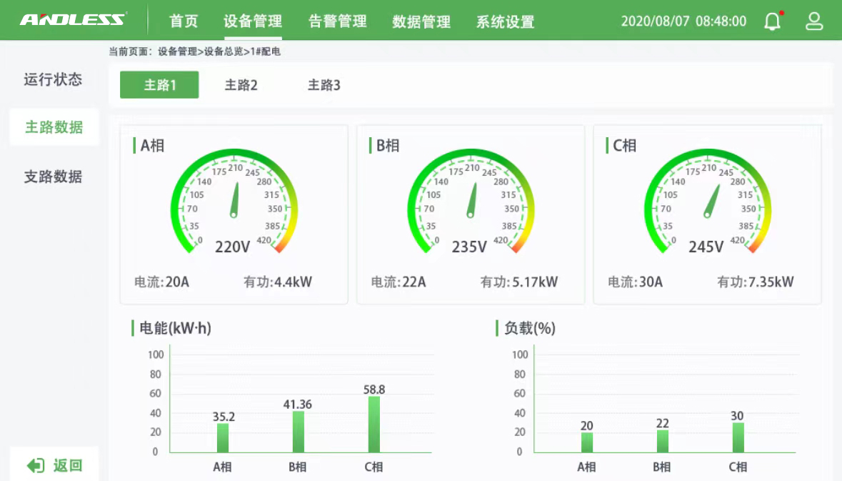 智能安全監(jiān)測(cè):配電支路智能檢測(cè),供電鏈路全顯示。開(kāi)關(guān)接線端了溫度監(jiān)測(cè),主動(dòng)監(jiān)控關(guān)鍵節(jié)點(diǎn)溫度。